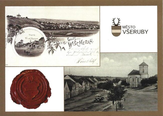 Všeruby – kompilace dvou starších pohlednic (s logem obce)