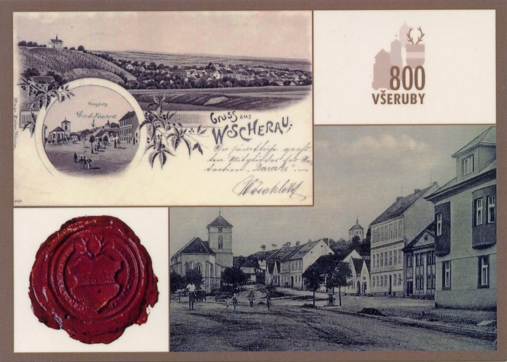Všeruby – kompilace dvou starších pohlednic (s logem 800 let)